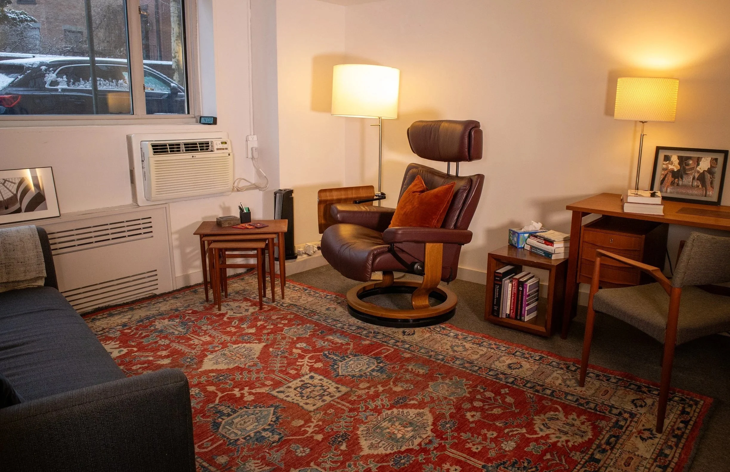 Dr. Menaker’s approach is informed by interpersonal psychodynamic psychotherapy, with attention to how early and ongoing relationships shape emotional experience. He is particularly interested in helping people make sense of patterns that feel confusing, overwhelming, or difficult to change.